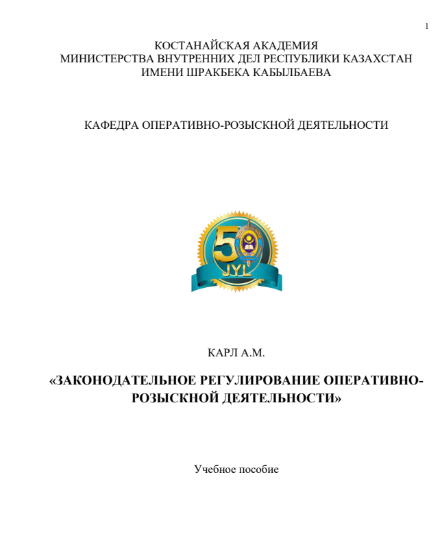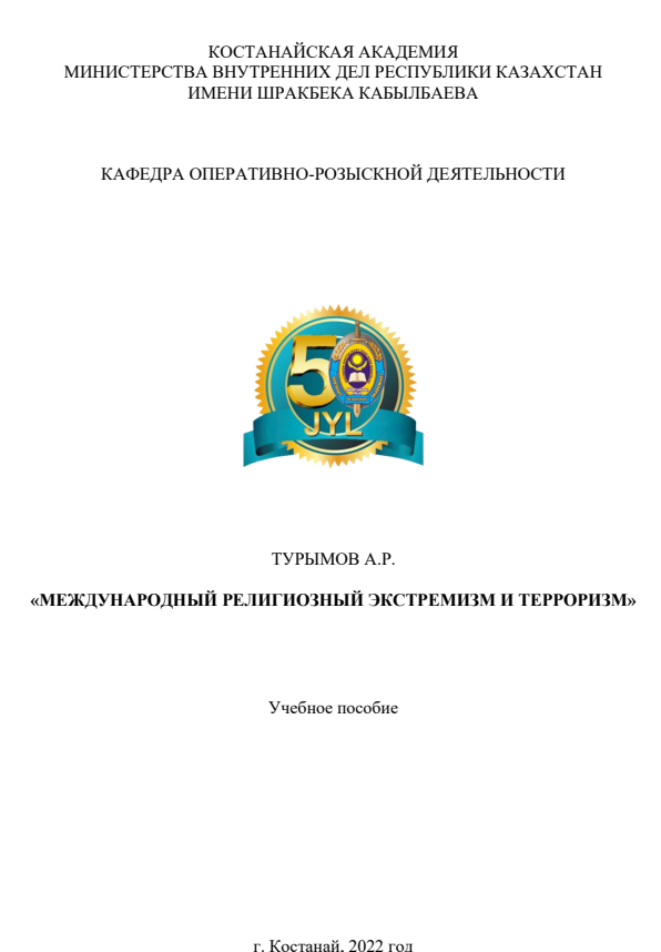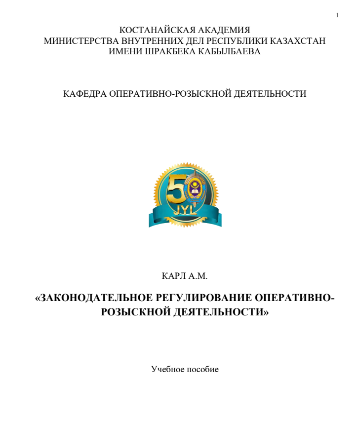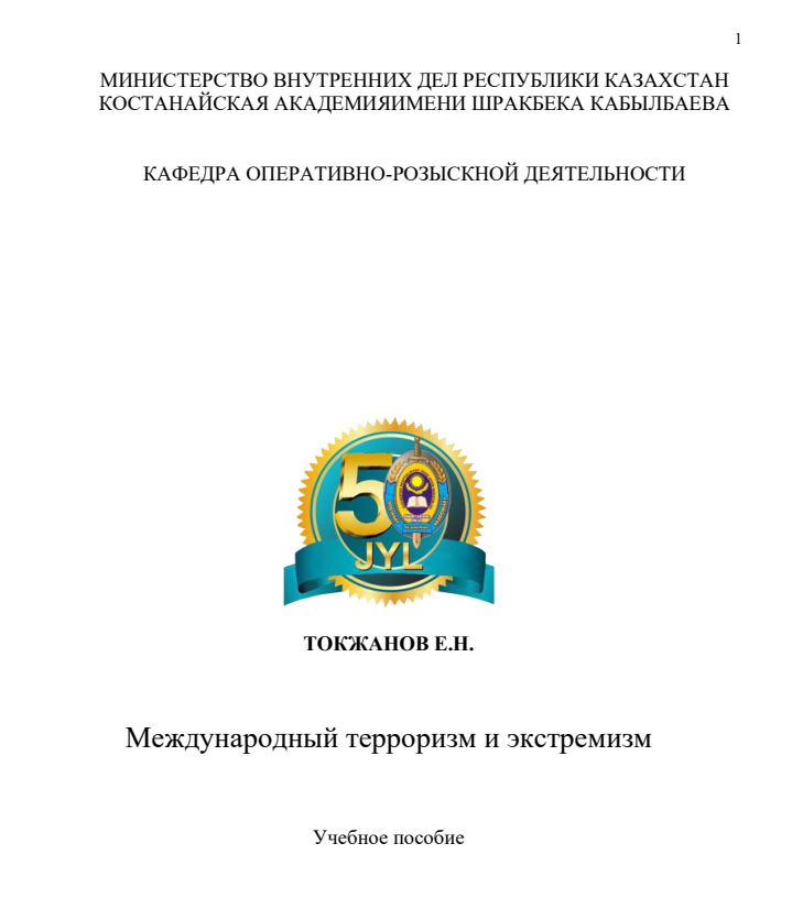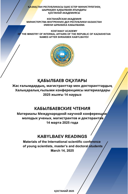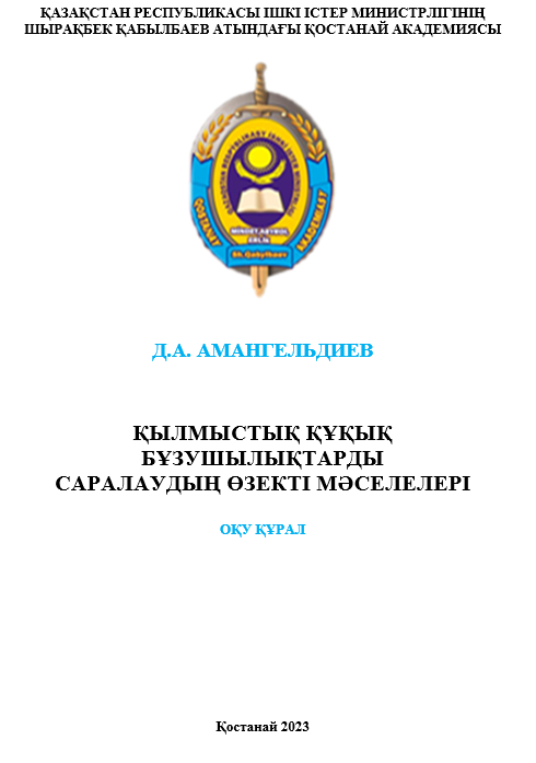Издательство: КОСТАНАЙСКАЯ АКАДЕМИЯ МИНИСТЕРСТВА ВНУТРЕННИХ ДЕЛ РЕСПУБЛИКИ КАЗАХСТАН ИМЕНИ ШРАКБЕКА КАБЫЛБАЕВА