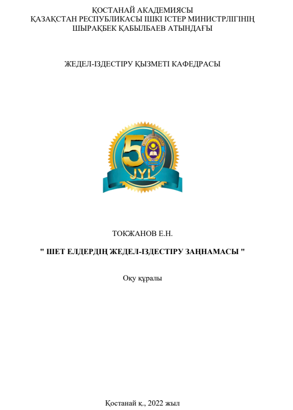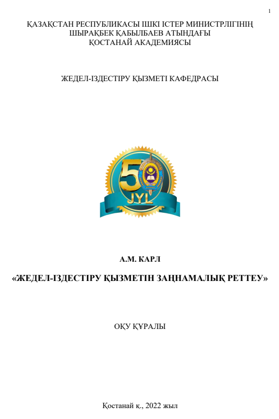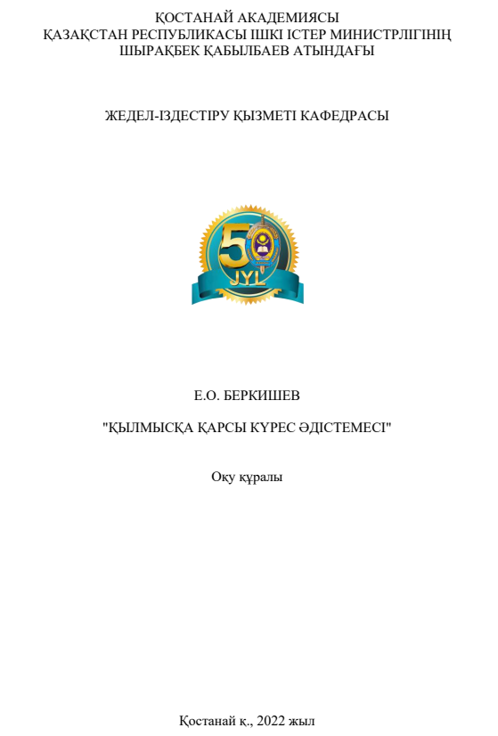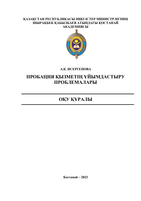 Издательство: ҚАЗАҚСТАН РЕСПУБЛИКАСЫ ІШКІ ІСТЕР МИНИСТРЛІГІНІҢ ШЫРАҚБЕК ҚАБЫЛБАЕВ АТЫНДАҒЫ ҚОСТАНАЙ АКАДЕМИЯСЫ