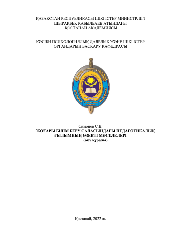 Издательство: МИНИСТЕРСТВО ВНУТРЕННИХ ДЕЛ РЕСПУБЛИКИ КАЗАХСТАН КОСТАНАЙСКАЯ АКАДЕМИЯИМЕНИ ШРАКБЕКА КАБЫЛБАЕВА