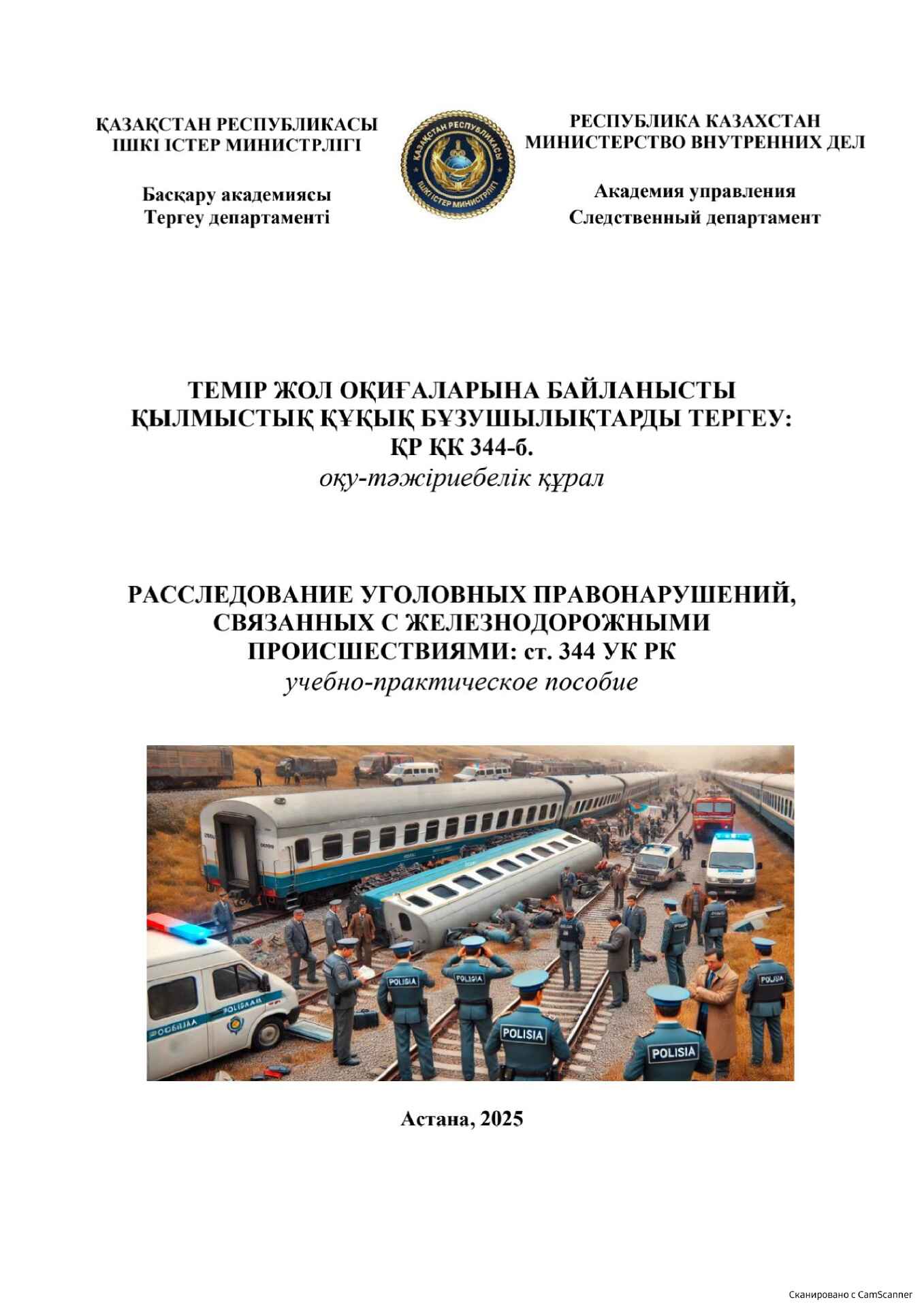 Учебно-практическое пособие по теме: «Расследование уголовных правонарушений, связанных с железнодорожными происшествиями: статья 344 УК РК».